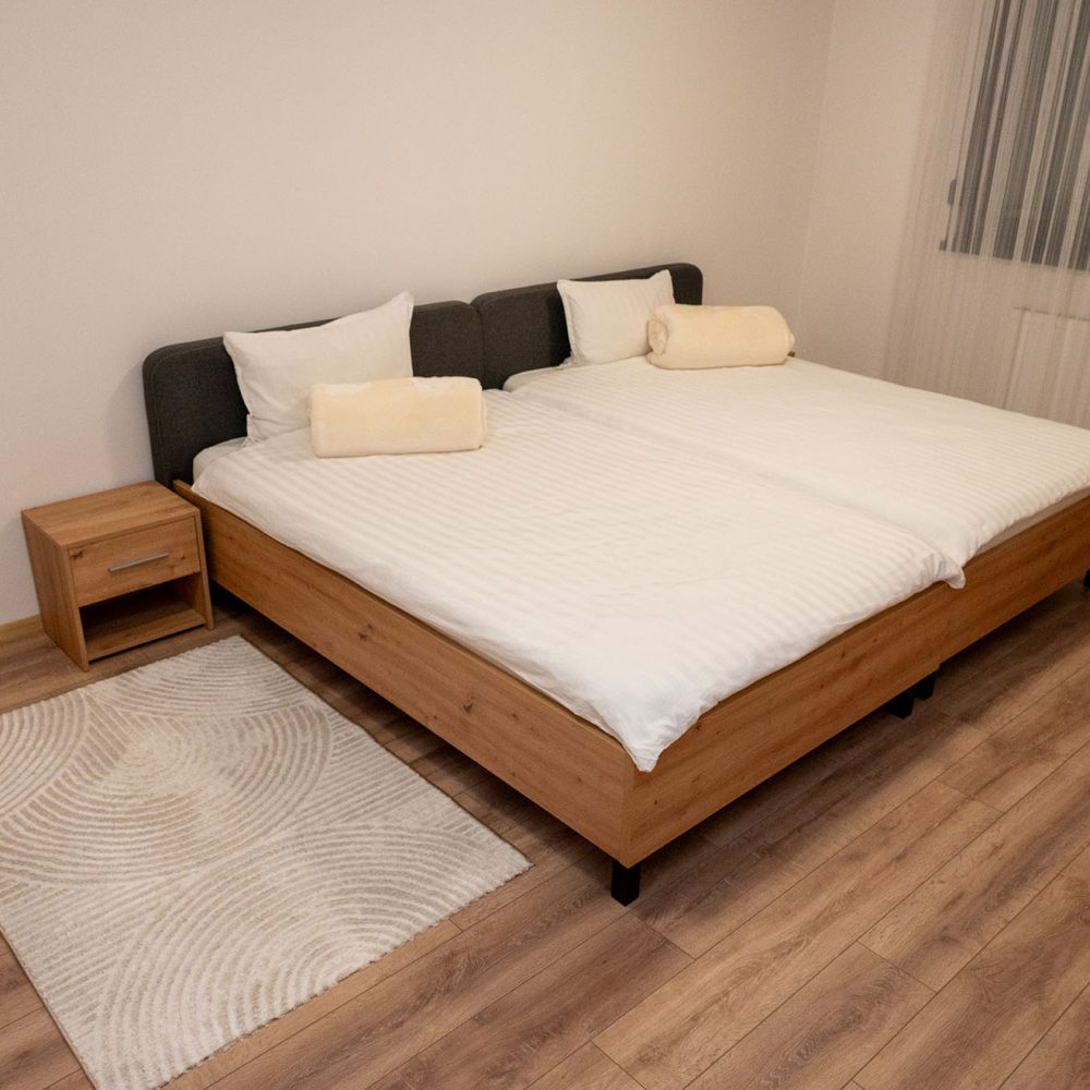 Bed size: one double bed (183 x 203 cm) + two king singles (107 x 203 cm) + sofa bed